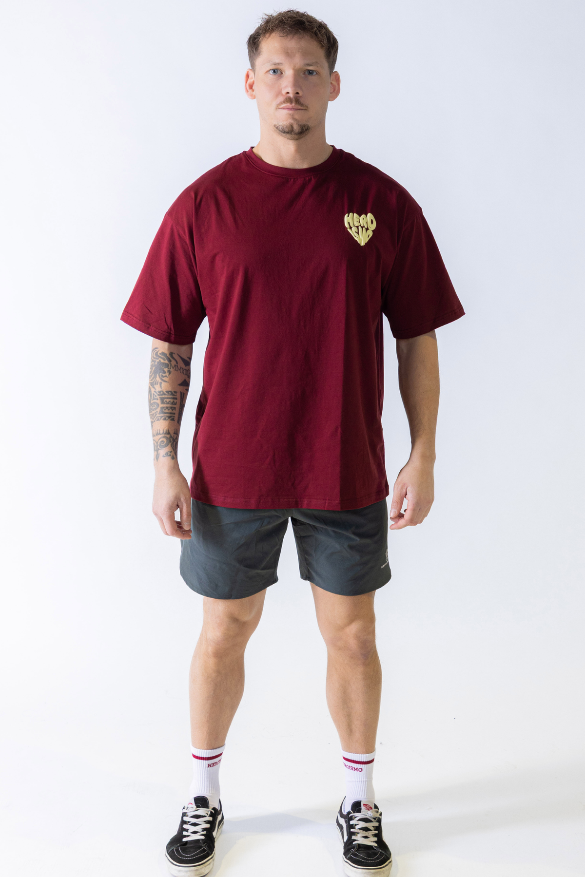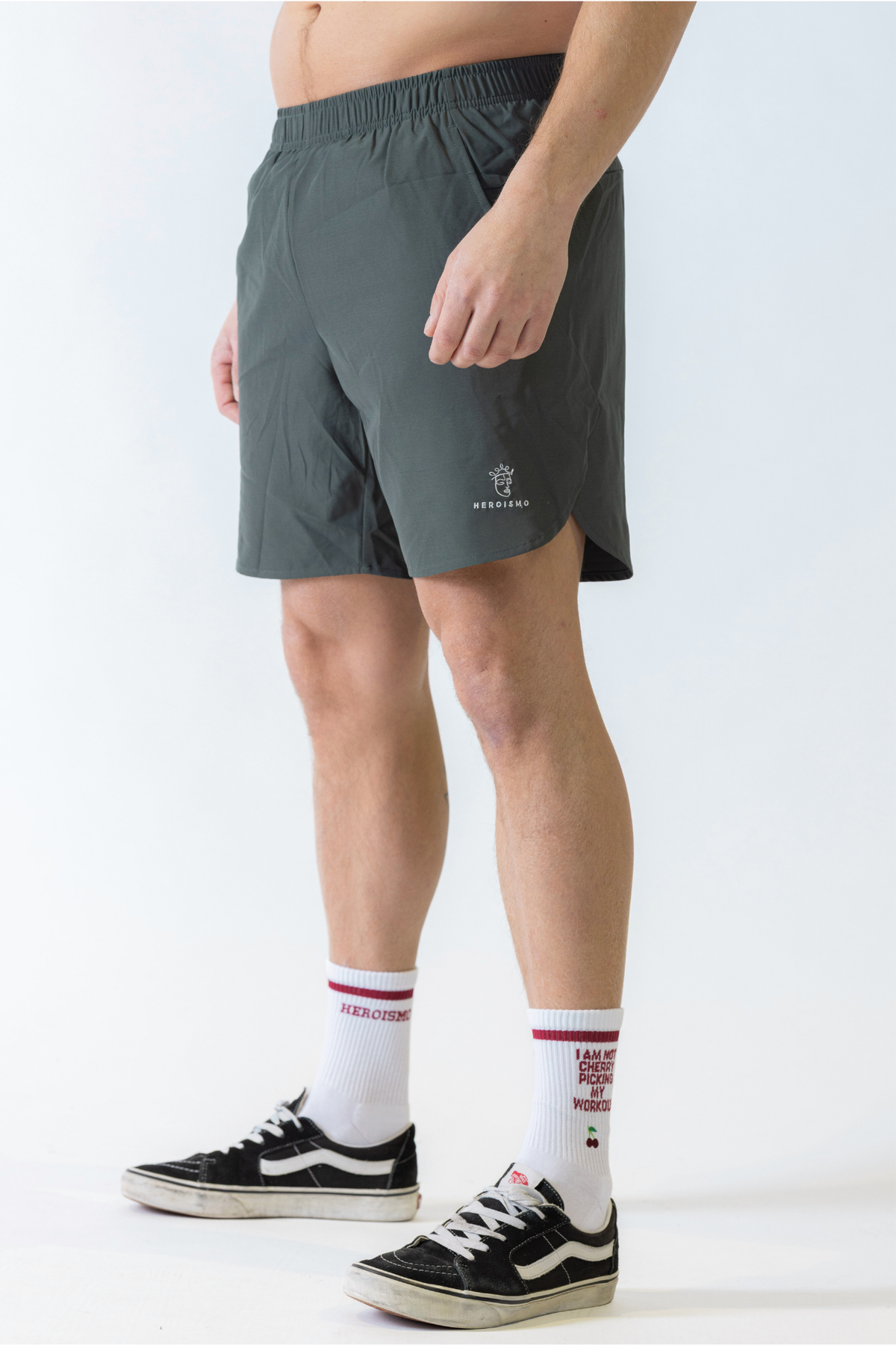 - Practical Features: Embroidered Heroismo branding, two deep mesh pockets, and an elastic waistband that stays secure through every rep.