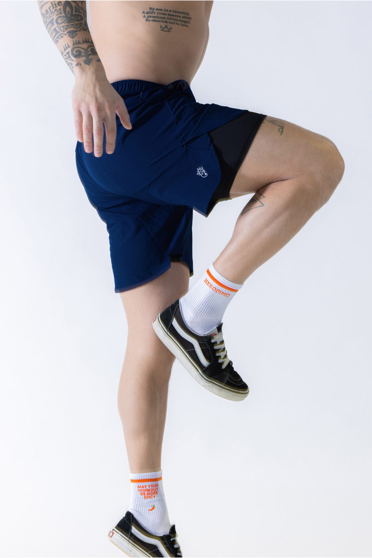 • Détails Premium : Branding Heroismo brodé sur le côté, deux poches profondes en mesh et une taille élastique pour un maintien parfait.